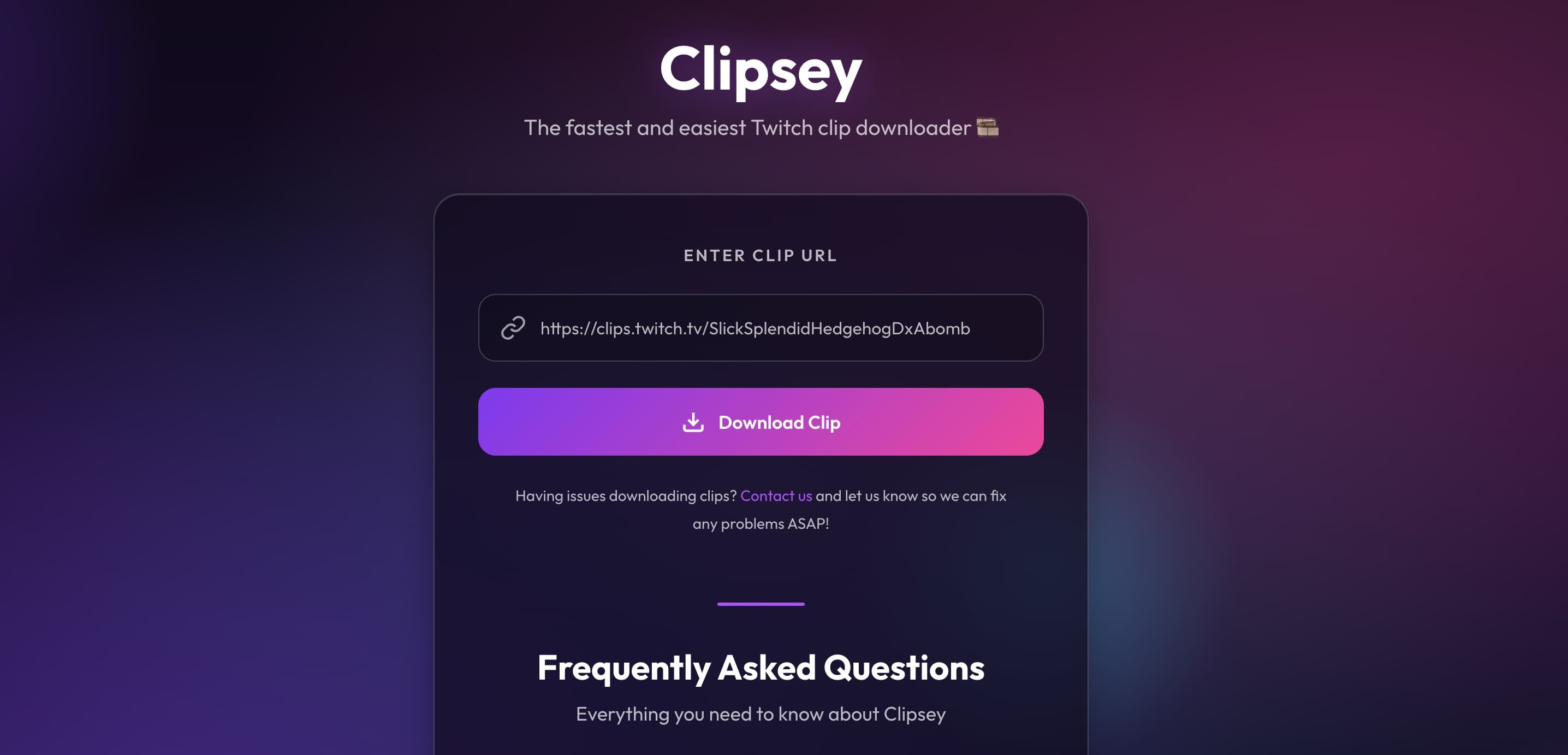 Twitch clip downloader web app, 7,000+ DAUs. Back-end serverless API using Ruby on Jets, AWS Lambda, API Gateway & S3, with front-end static site using vanilla JS, HTML, CSS.